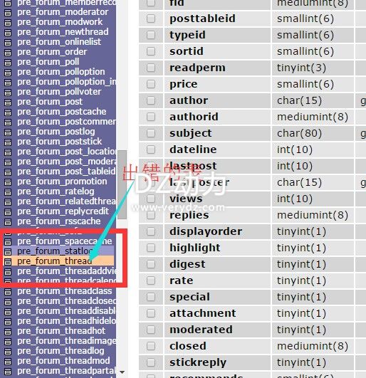 方法 2 的检查修改详细流程:(以Discuz! 的 threads 表为例,其他操作均相同)