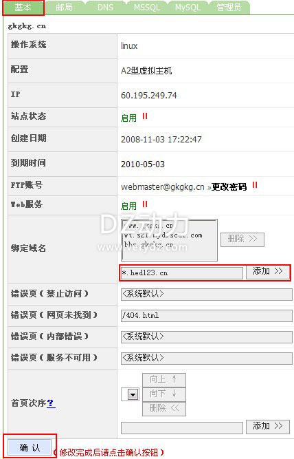 一样,域名处写 *,点“增加新记录”,完成后需要在主机绑定此域名,格式是